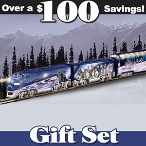 Product Description : Whether seen in a pack or exploring the wilderness alone, the wolf's powerful presence has captivated people for centuries. Now, capture the spirit of the wolf in a unique way with this wolf art HO-gauge train set, available exclusively from The Bradford Exchange, Hawthorne Village Division. Featuring a diesel locomotive, a coordinating train car, and a passenger car, this dramatic train set includes everything you need to start the excitement running right away with the included FREE 16-piece track set, power pack, and the Summer Crossing Gate & Block Signal Train Accessory Set - over a $100 value!Precision-scaled to run on HO-gauge track, each train car in this collectible train set is crafted with a solid metal chassis, gleaming brass wheels and features stunning wolf portraits by acclaimed wildlife artist Al Agnew. Plus, the locomotive's headlight and passenger car windows cast a warm glow to evoke the power of the wilderness. Strong demand is expected, so don't delay. Order now! Lights up! The locomotive headlight and passenger car windows illuminate to pay glowing tribute to the noble timber wolfThe heirloom-quality train cars are precisely scaled; train is designed to run on HO gauge track Certificates of AuthenticityIndividual train cars run on HO train track, complete oval track measures 38" x 56"; 96.5 cm x 142.2 cm