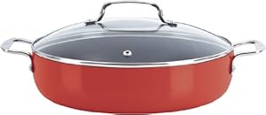 Ingrid Hoffman Simply Delicioso by T-fal C1078263 Nonstick Dishwasher Safe 12-Inch Everyday Pan with Glass Lid Cookware, Red